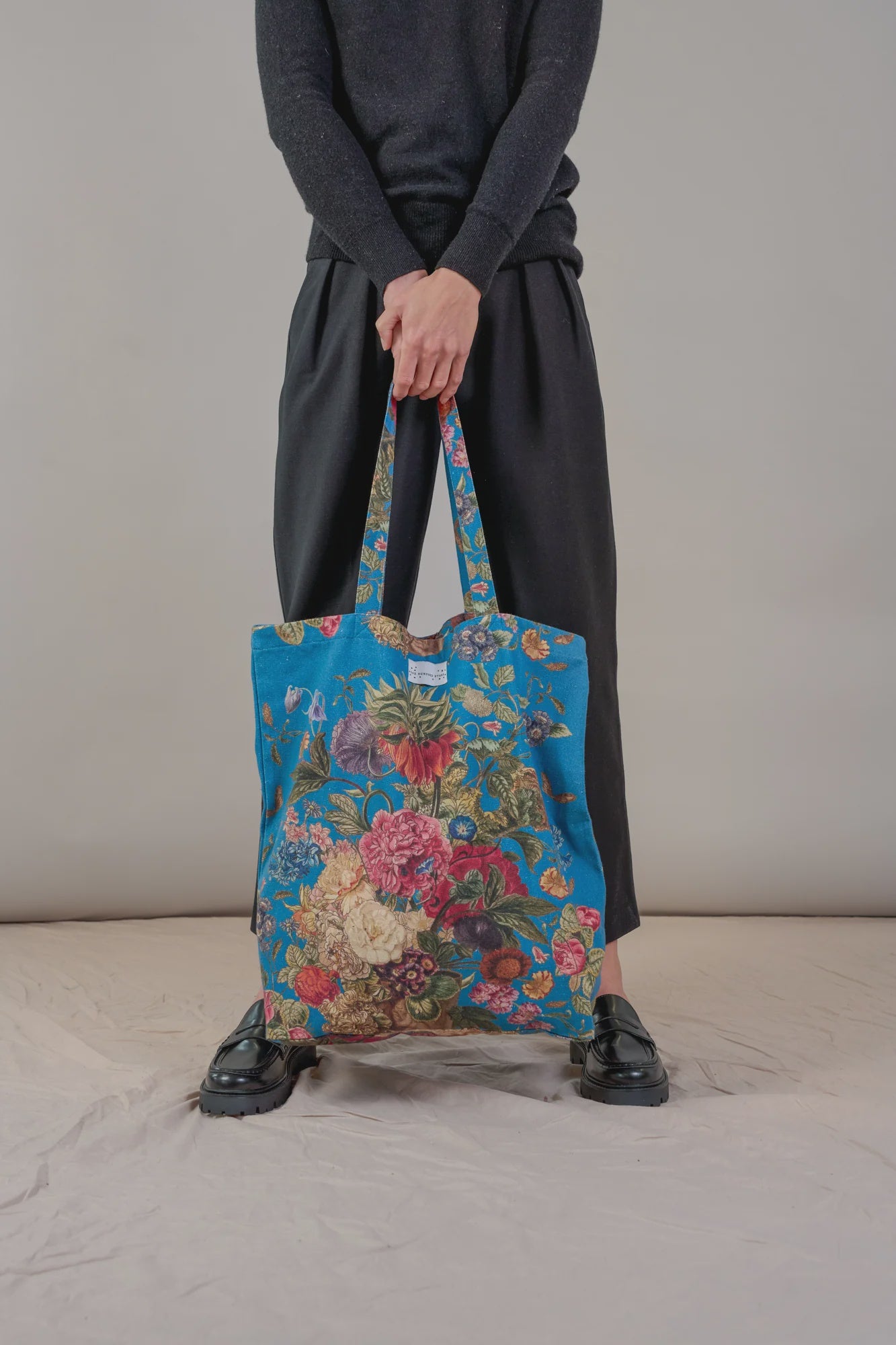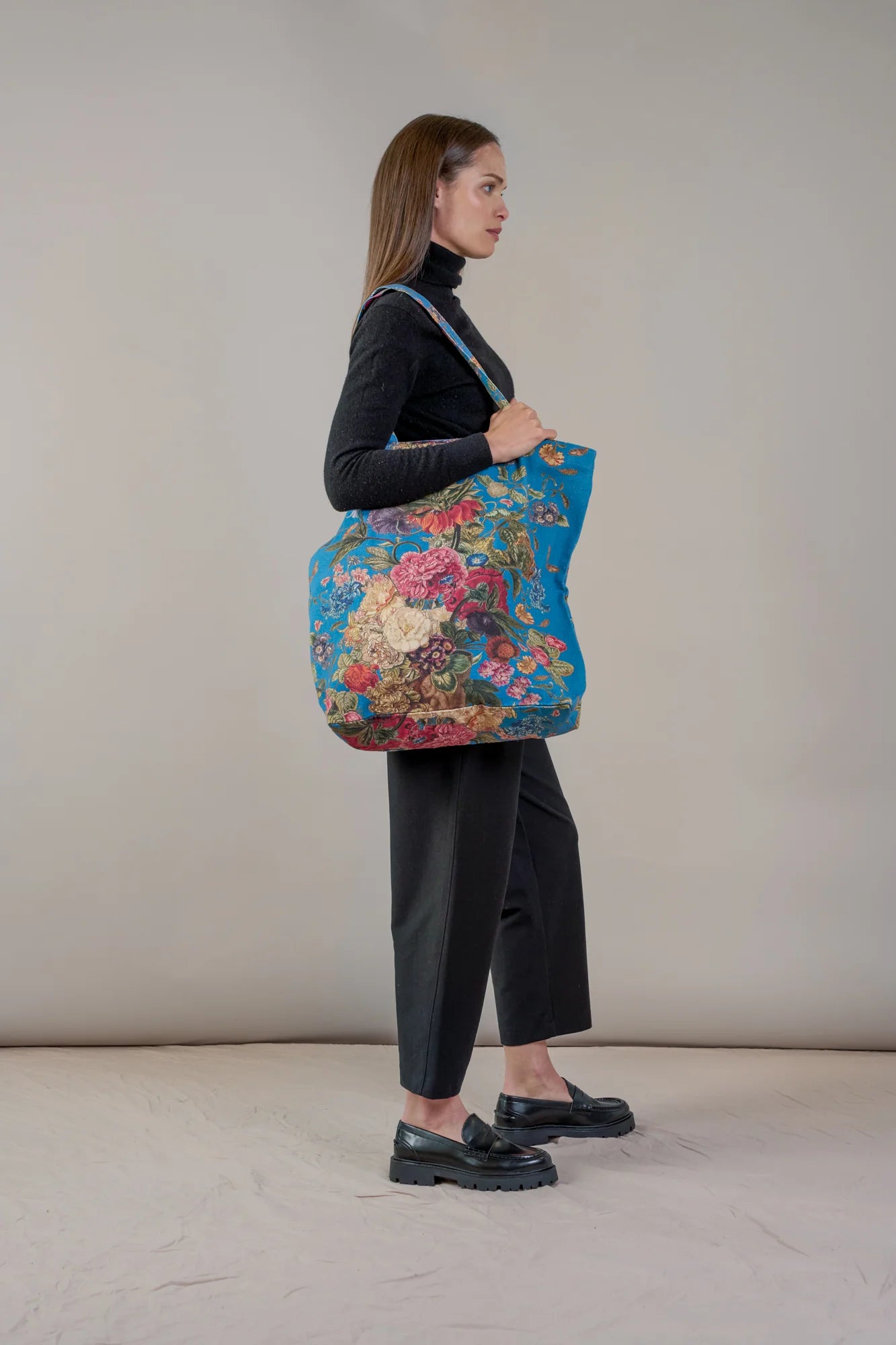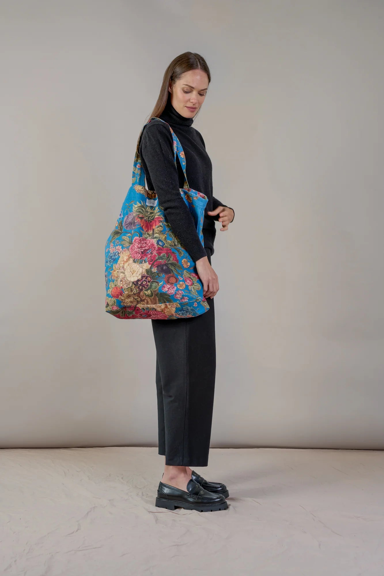 Velvet Quilted Tote Bag- Navy Blue Paradise