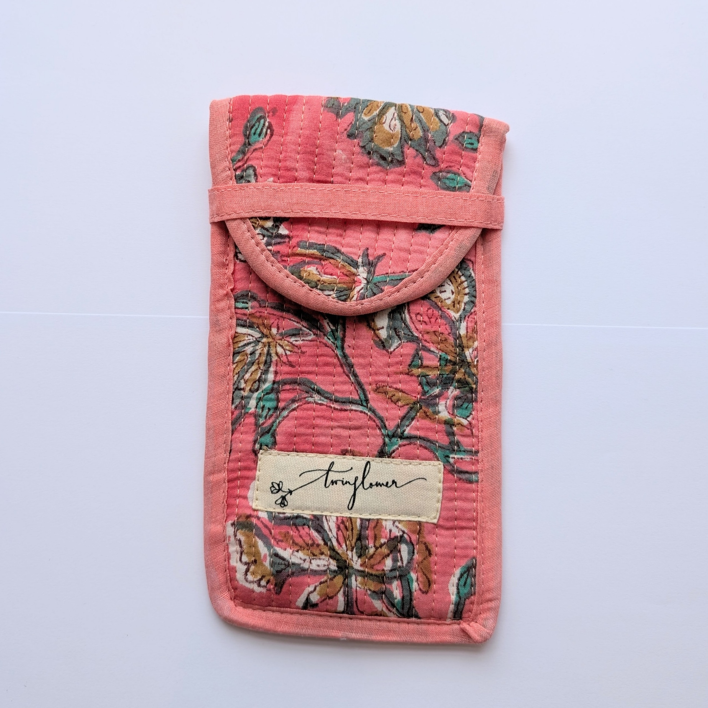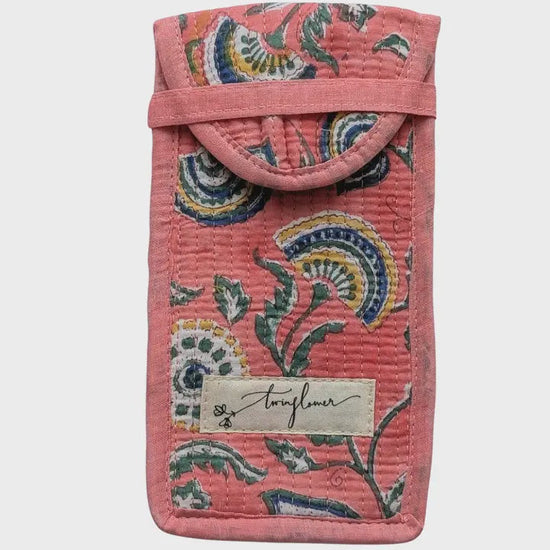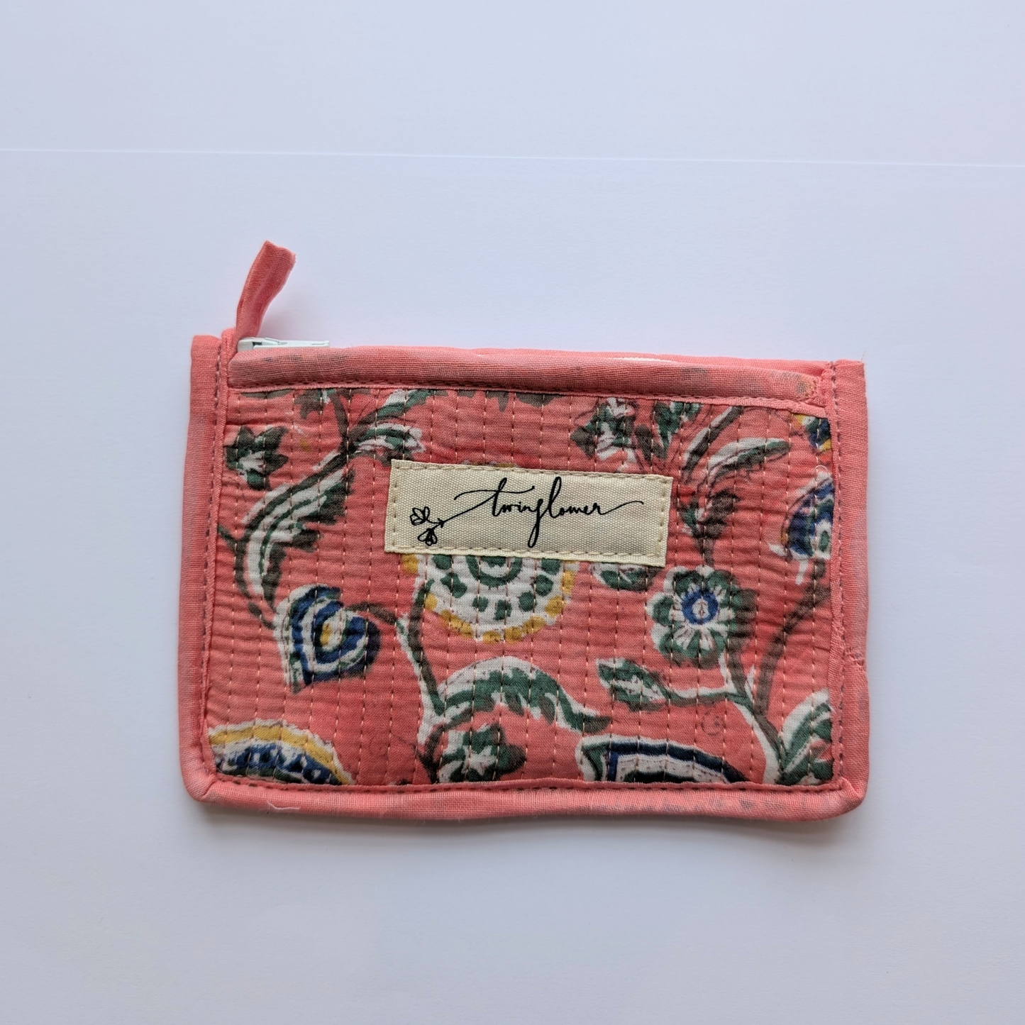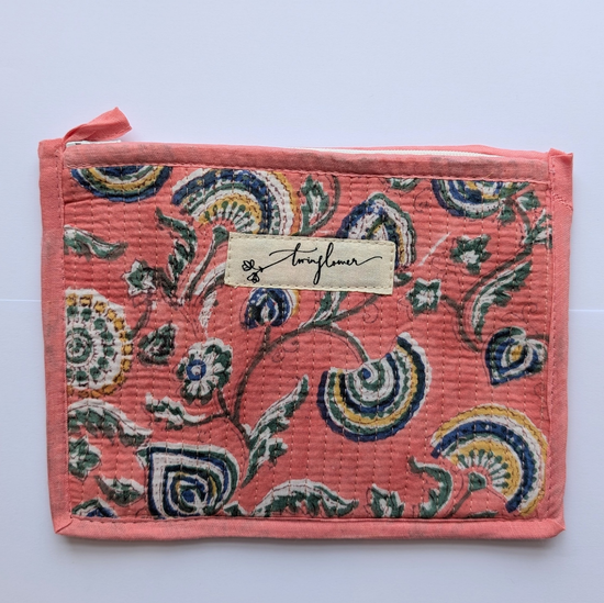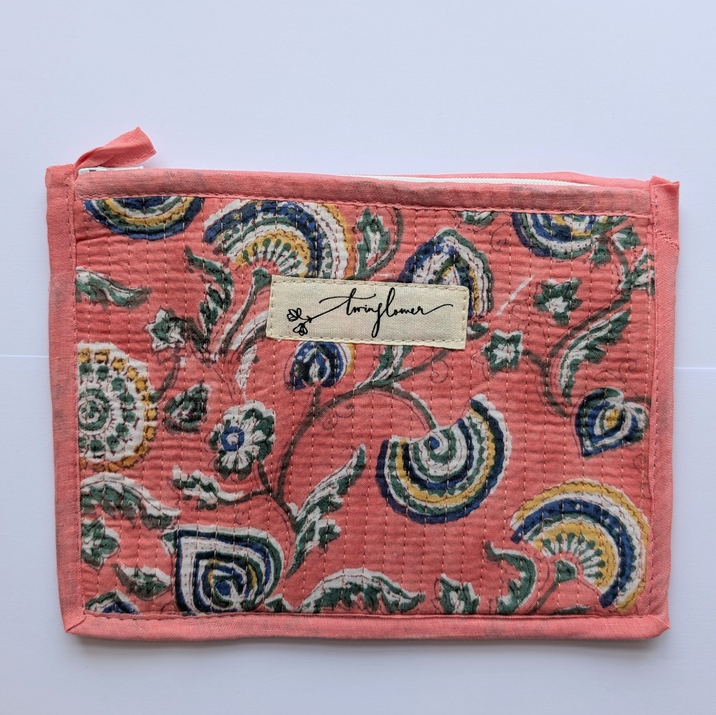 Teal & Pink Flower Block Print Quilted 3 Fold Travel Bag