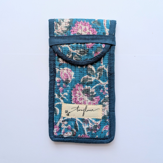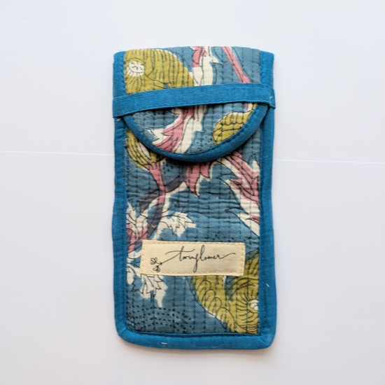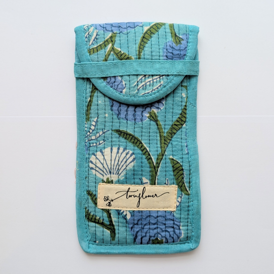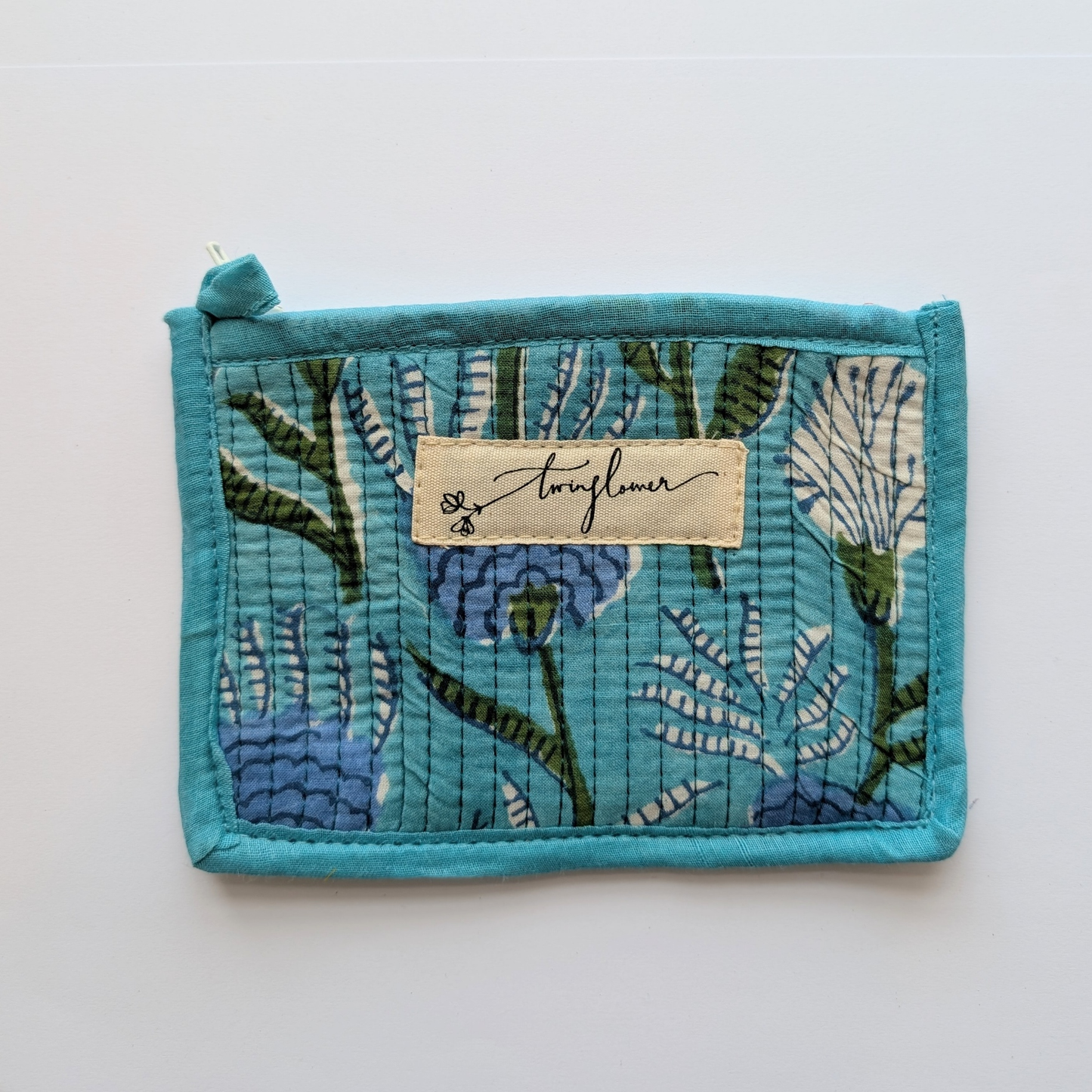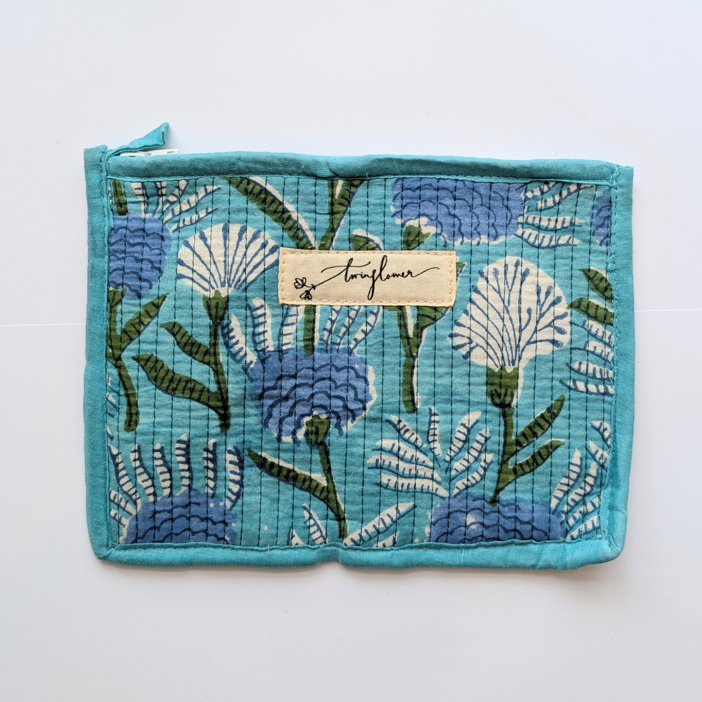 Blue & Green Floral Block Print Quilted 3 Fold Travel Bag
