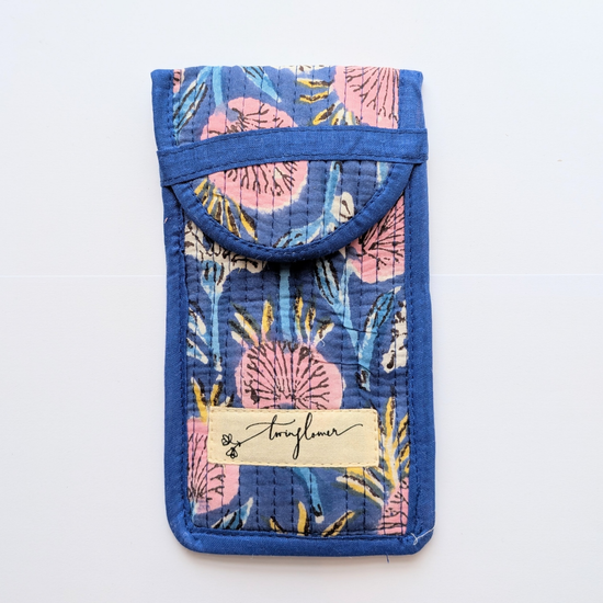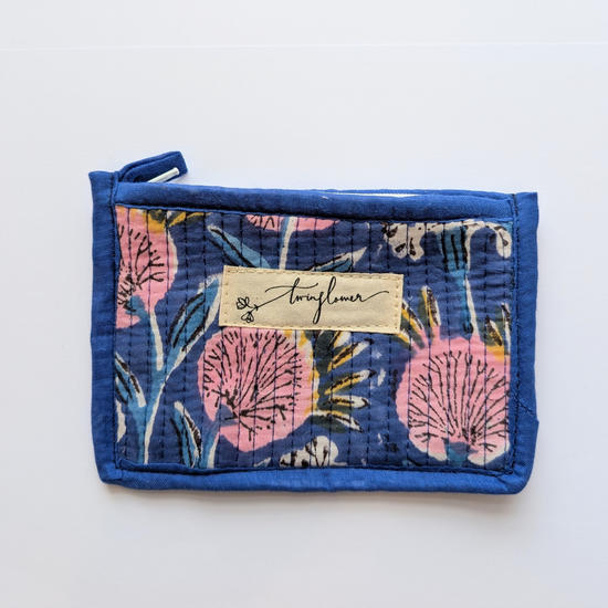 Blue & Pink Floral Block Print Quilted 3 Fold Travel Bag