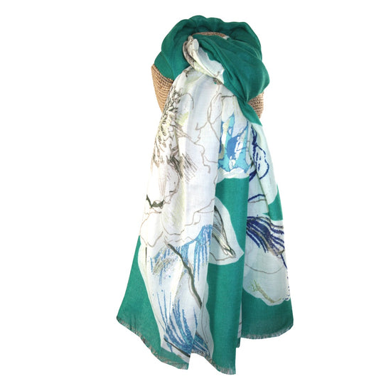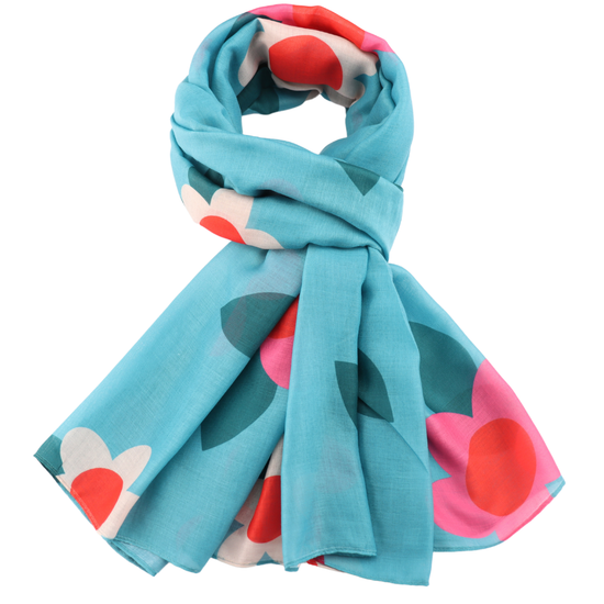 Aqua Blue Floral Block Print Pareo Sarong Scarf